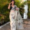 Presenting Design No. NC-5386, a truly graceful and sophisticated Soft Organza Saree. This beautiful piece features an exquisite floral print, blending classic beauty with modern elegance. The saree is further enhanced with delicate beads and katdana handwork on the border. Each petal in the design tells a story of timeless charm. It comes with a matching blouse showcasing the same beautiful floral print and handwork on the sleeves. This elegant saree, perfect for those who appreciate tradition and contemporary style, is available for ₹5,399.00.